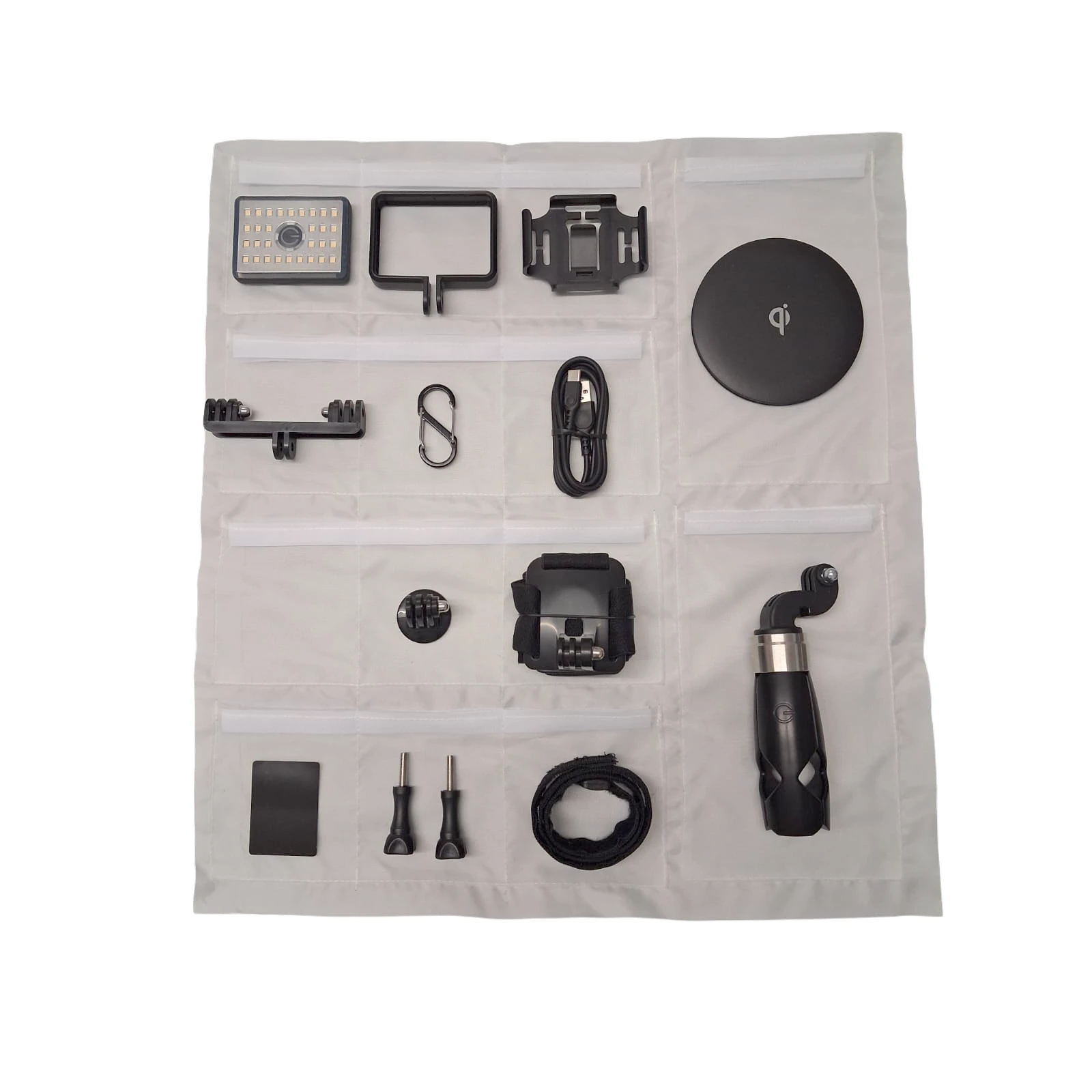 A carry-all with 14 individual compartments so you can keep all your accessories organised and in one place. Easy to roll up and carry with you, each pocket has a Velcro lip to secure the accessories inside.